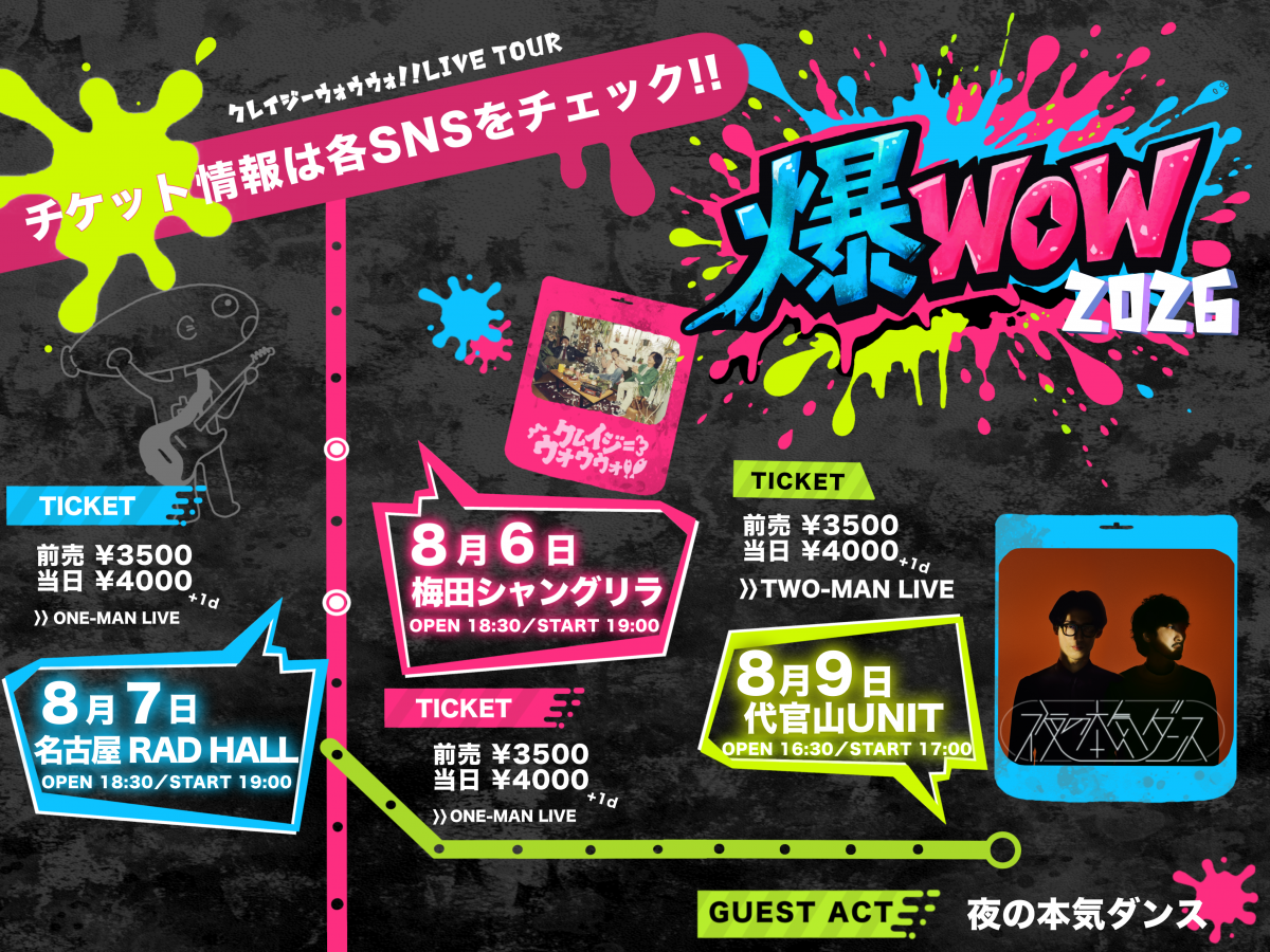 クレイジーウォウウォ!!初の東名阪ツアー開催決定!!